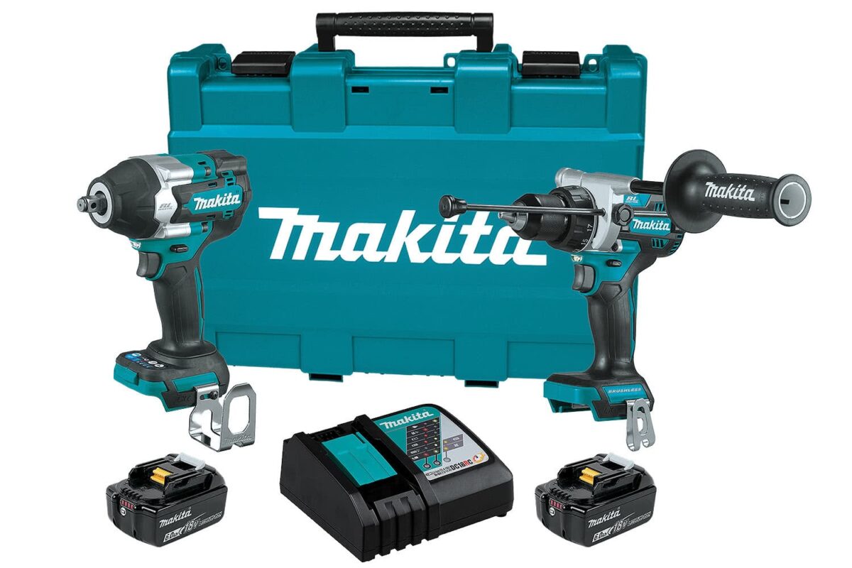 LXT 18V 5.0Ah 8pc Job-site Kit includes: DGA504 Cordless Brushless Angle Grinder DJR187 Cordless Brushless Reciprocating Saw DHP486 Cordless Brushless Hammer Drill DTW300 Cordless