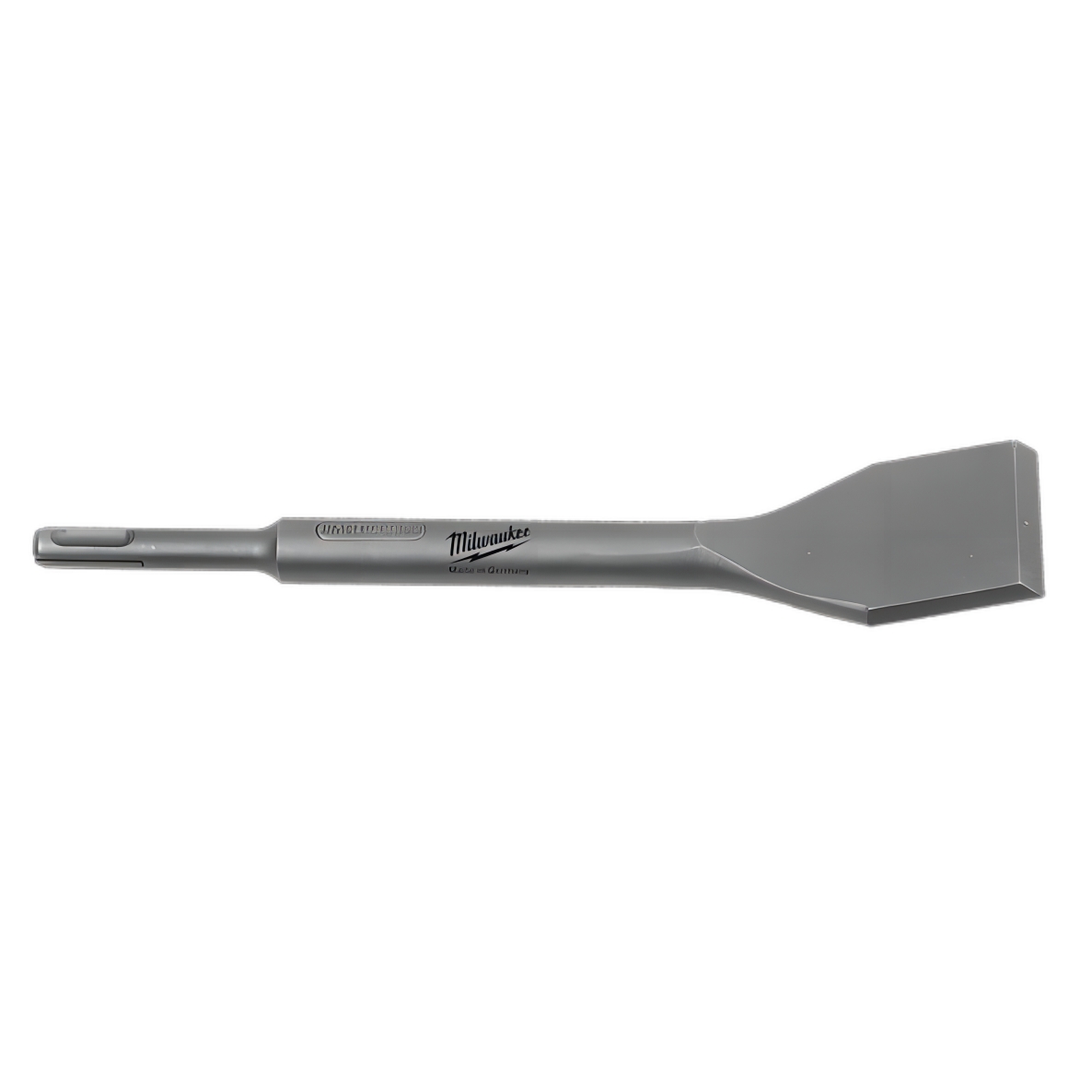 Tile removal chisel with flat base and single-angled cutting edge. Additional width for wider applications and less passes on large jobs. Specifically designed for tile removal and heavy duty removal along flat surfaces.