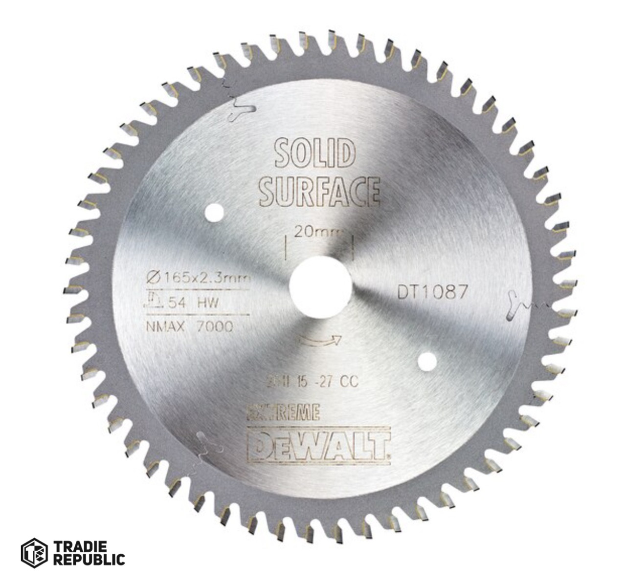 PREORDER Dewalt DT1087-QZ SAW BLADE EXTREME WORKSHOP 165MM X 20 X 54T MTCG SOLID SURFACE(Box Qty 4)