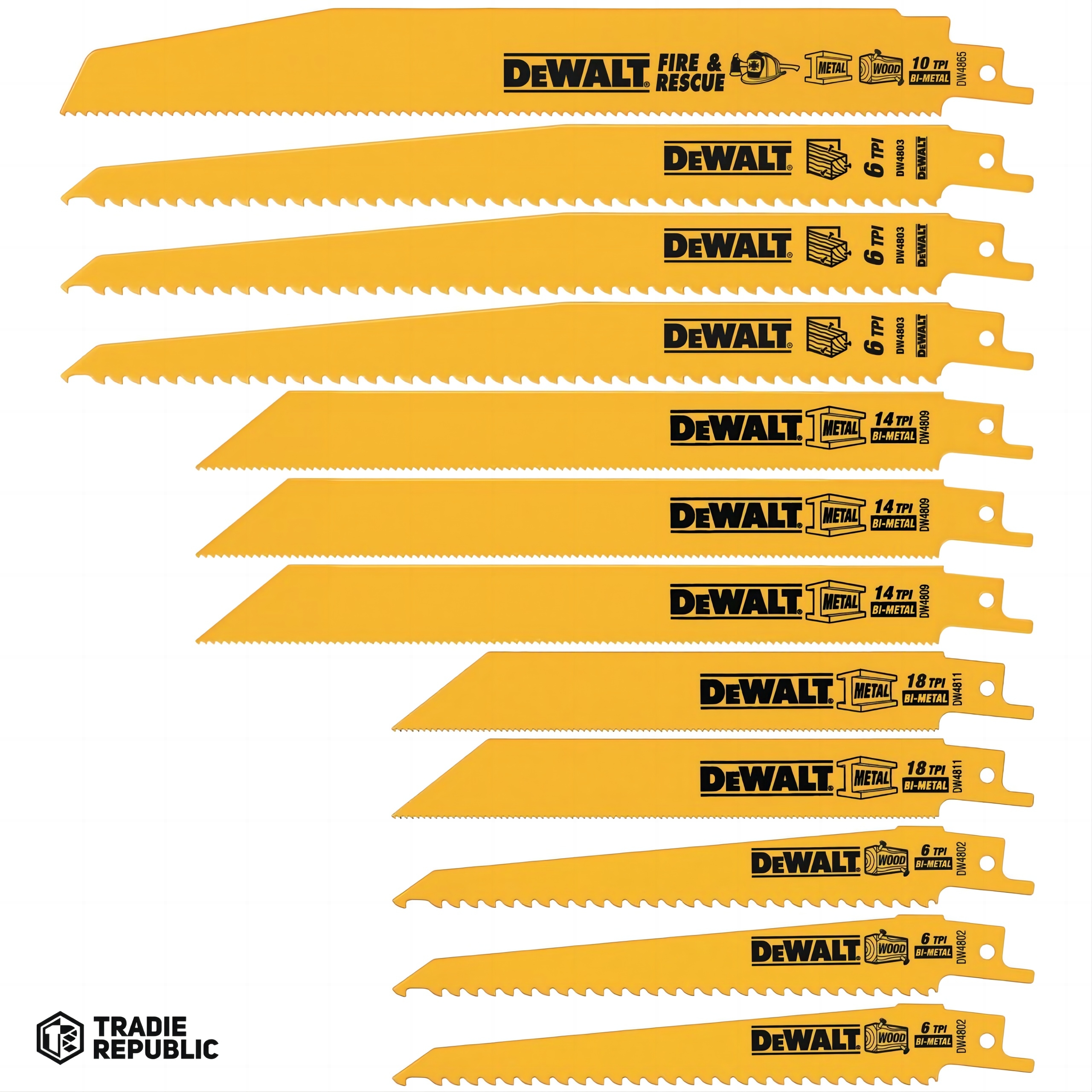 PREORDER Dewalt DW4892 RECIP BLADE SET WOOD METAL RESCUE 12PC SET WITH CASE (Box Qty 5)
