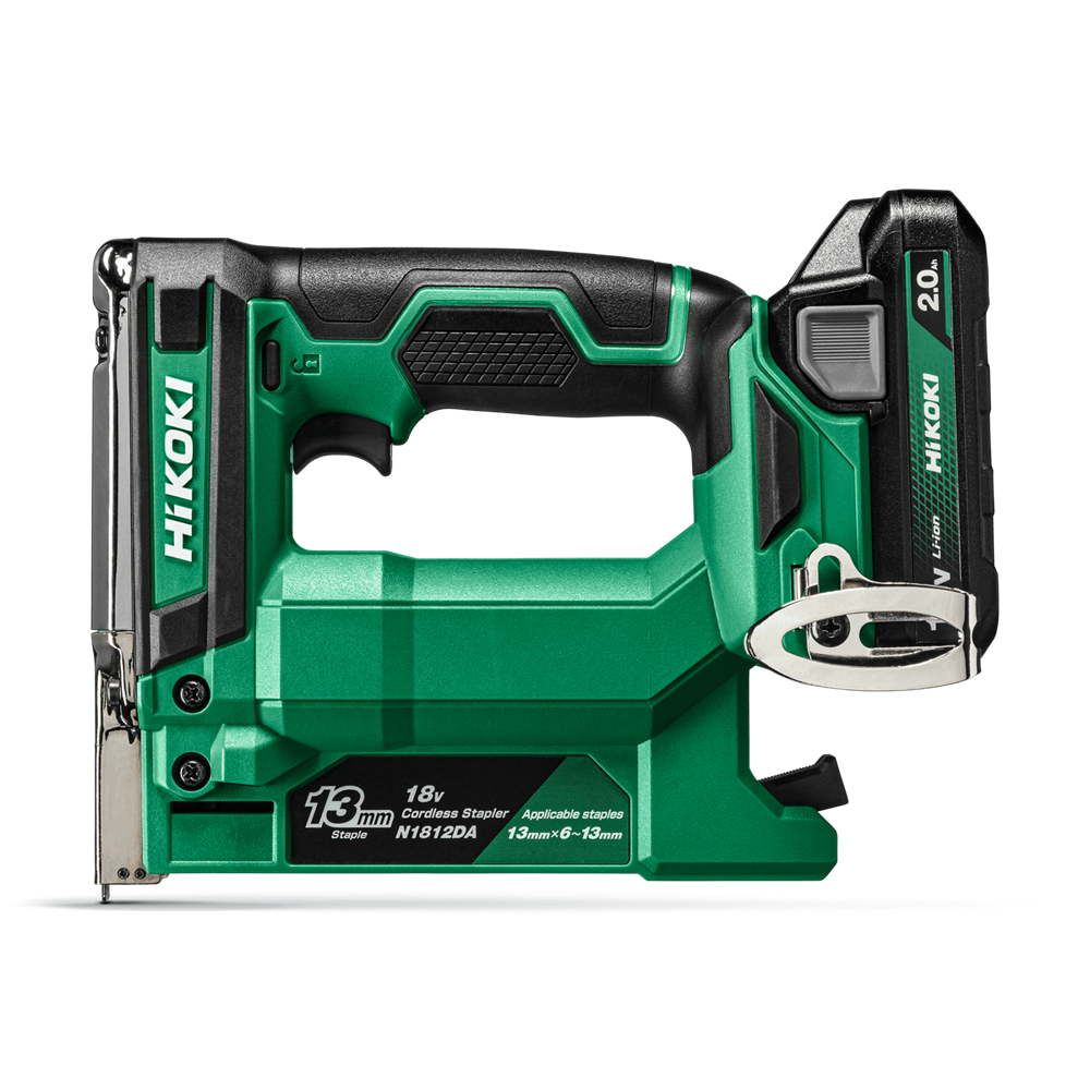 HiKOKI 18V cordless 12mm fine wire stapler that’s lightweight and compact and powered by HiKOKI’s Spring Drive System. The N1812DA delivers high stapling speed, powerful stapling – drives 13mm staples with ease. The N1812DA shoots up to 15000 staples off a BSL36A18X 5.0Ah Battery (not included).