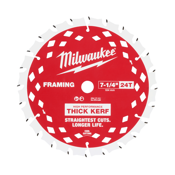 Milwaukee 48408740 184mm (7-1/4") 24T Thick Kerf Wood Circular Saw Blade Framing